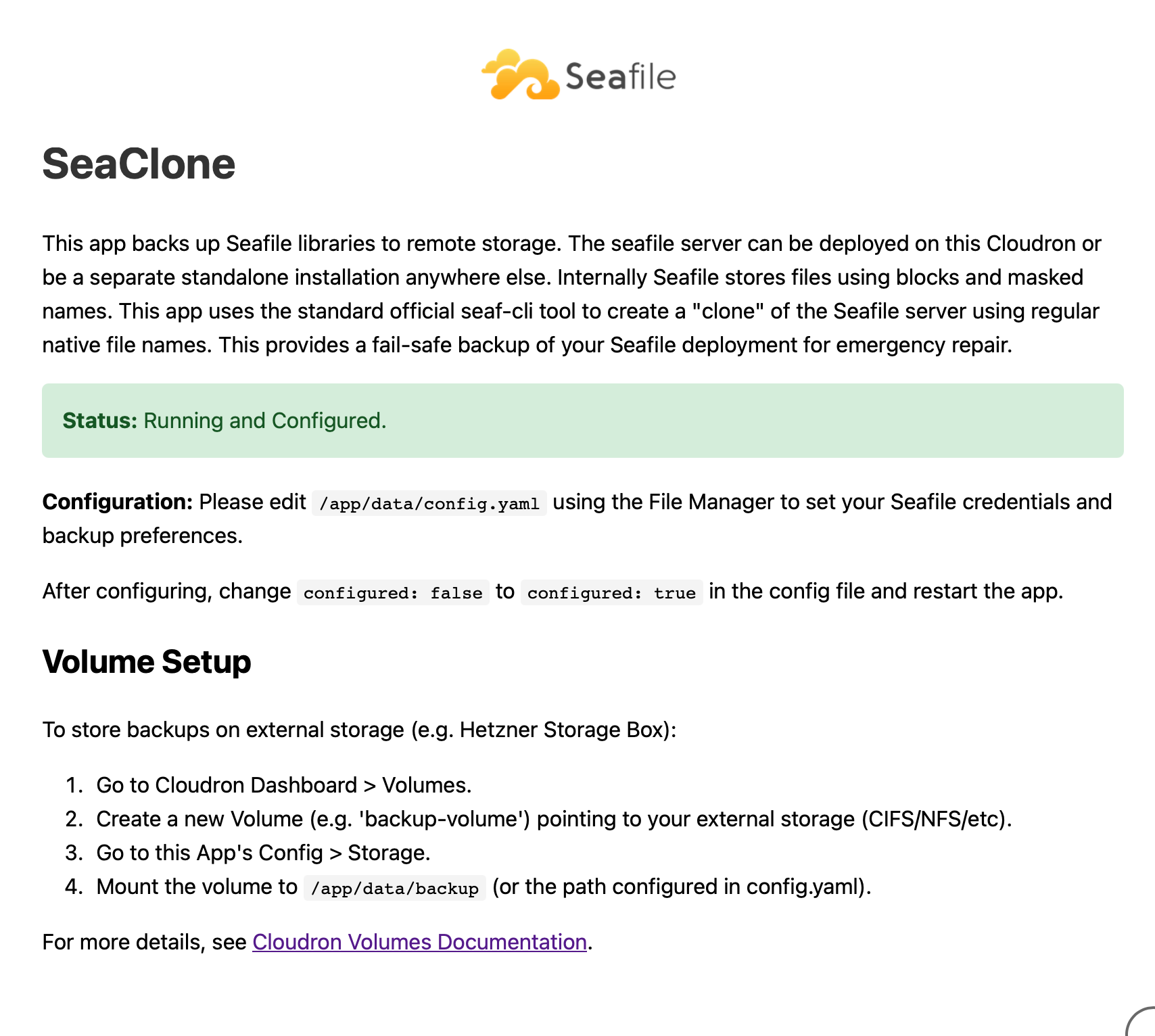 - Summary: SeaClone auto-maintains a clone of Seafile libraries and contents, locally in the app or on external remote volumes, e.g. Hetzner Storage Box.