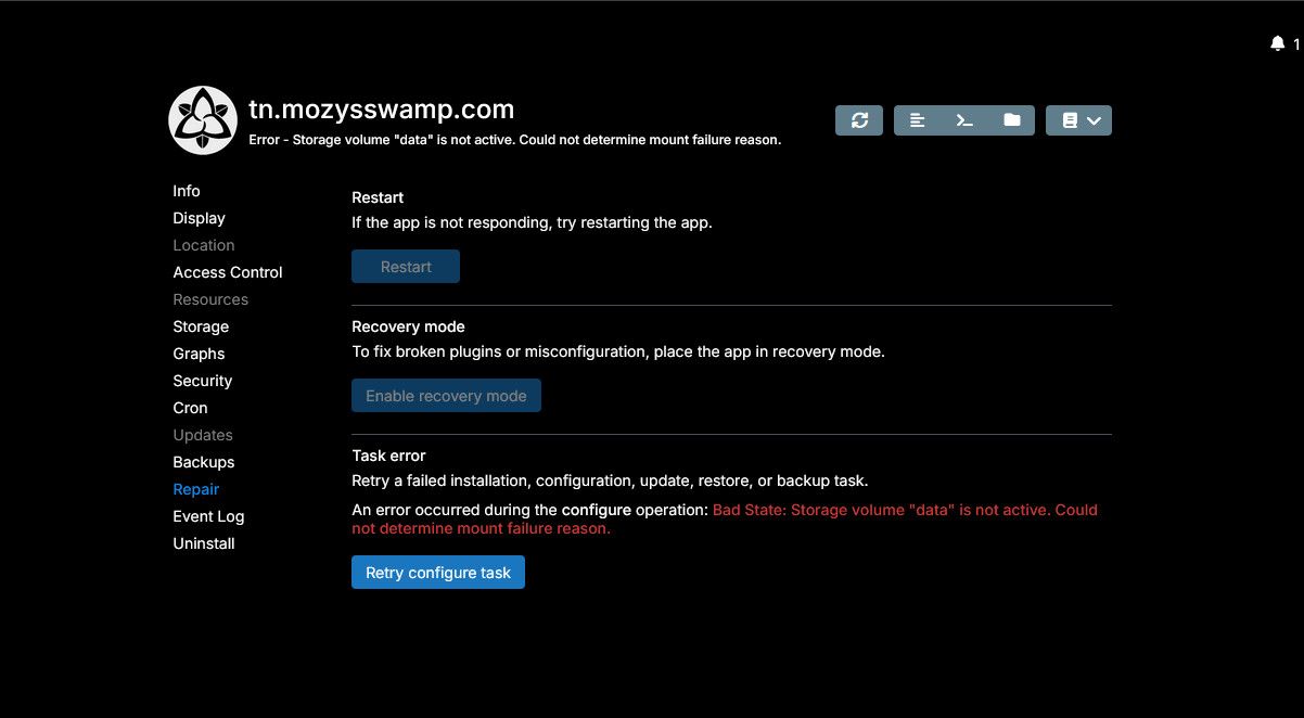 @nozy Does remount work? It's in the "..." menu . Maybe timing issue with mounting? Can you give us more information about that ext4 volume? External disk attached via usb? Cloud storage disk?