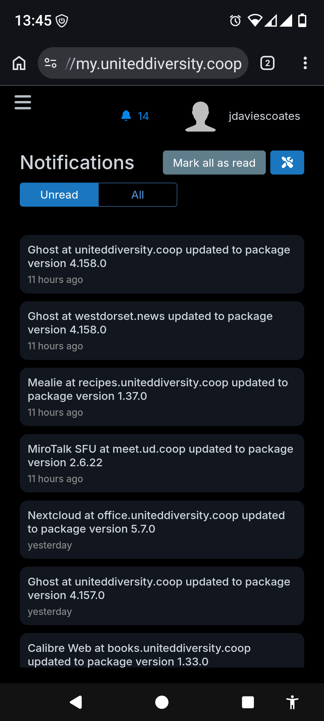 I've currently got 14 unread notifications but can only see 4 of then on Firefox: